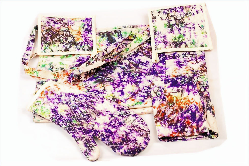 Nappe : 6 serviviettes et 3 coussins en kokodonda (technique de teinture biologique avec un savoir-faire artisanal datant de plusieurs décennies, confectionnés par les femmes teinturières de Bobo-Dioulasso)